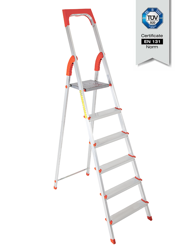 6 שלבים (5 מדרגות + פלטפורמה) – עמידה נוחה ובטוחה בגובה עבודה מרבי
