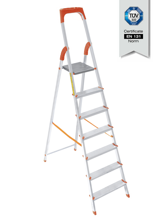 🪜 סולם אלומיניום 6+1 שלבים – גבוה, יציב ובטיחותי לשימוש ביתי