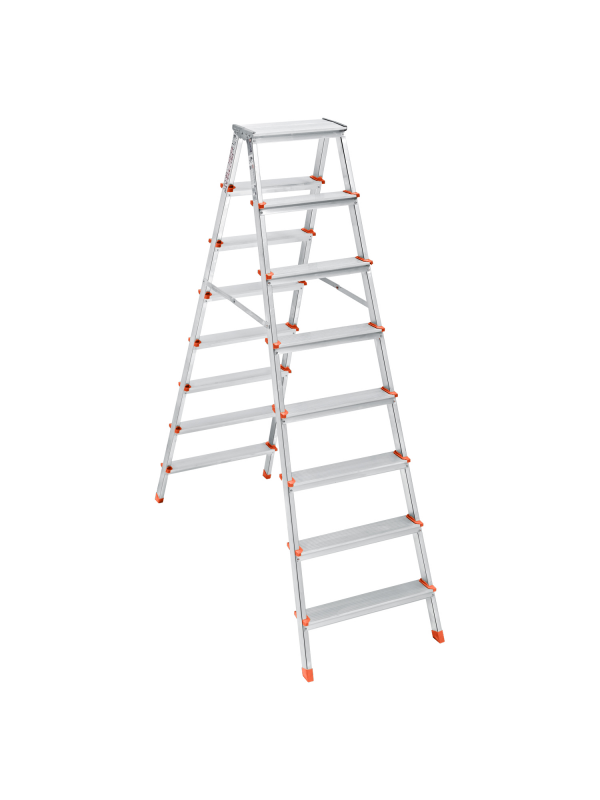 סולם אלומיניום A דו צדדי 4+4 עם מדרגה עליונה כפולה